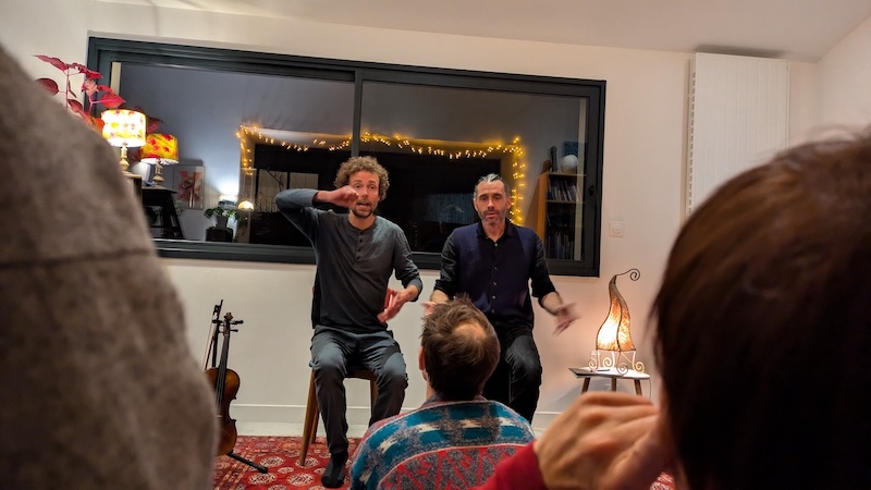 Entre histoires personnelles et contes traditionnels, Cyril et Adrien parlent de la mort en s’ôtant les mots de la bouche, en rime et en musique.